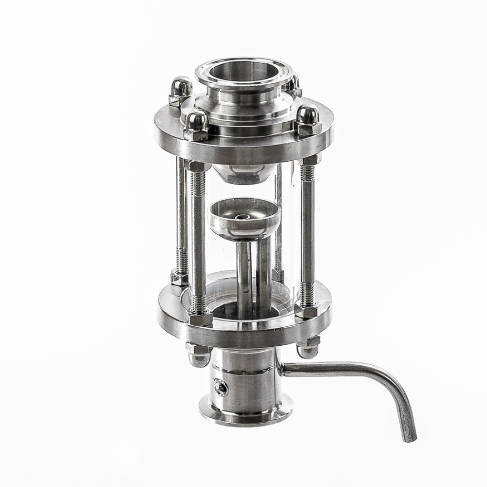 A diopter for KLAMP 1.5 inches with a built-in sampling unit is designed for sampling reflux at different sections of the column, mainly for sampling the head fraction and simultaneous visual control of the reflux outflow.