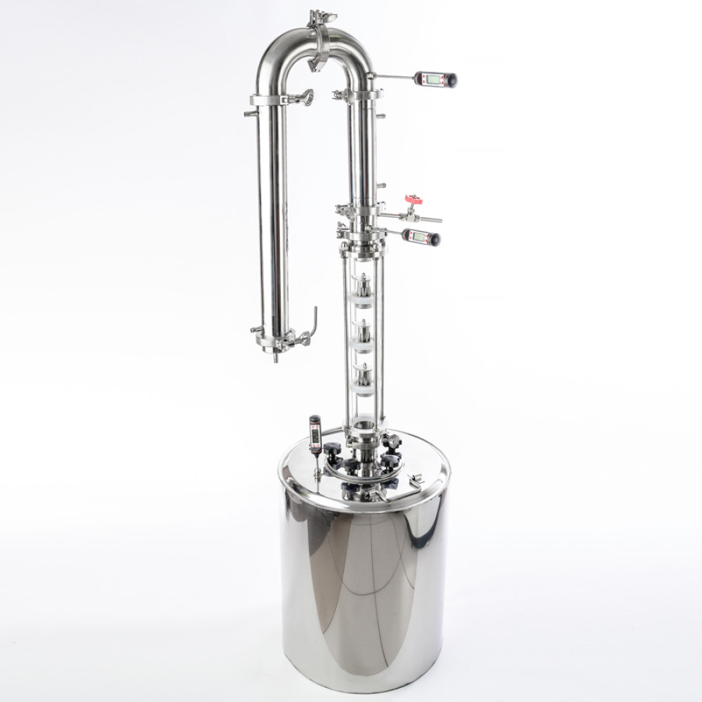 The column is produced serially, with a high level of automation of all operations. For the owner, this means factory quality, no reject, an unlimited lifespan. You can order a still cube with a drain cock, so as not to turn it over to drain the bard. You can also install a thermometer and a safety valve on the cube.